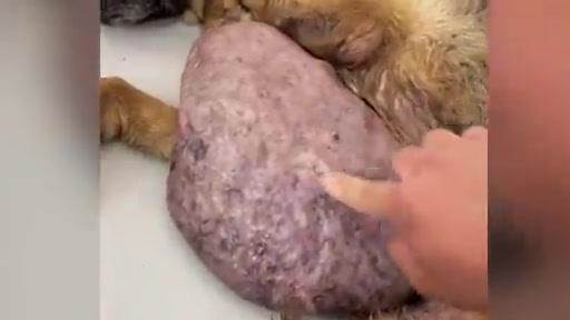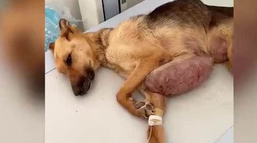ボランティアはすぐに犬を動物病院に連れて行きました。獣医は腫瘍が長年にわたって成長し続け、非常に大きく、厚いことを確認しました。犬は貧血状態にあり、体力が極度に低下していました。まずは血液を補給し、点滴を行って犬の体力を回復させることが必要でした。