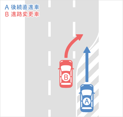 「ウインカーをきちんと出していれば、ゼブラゾーンを踏んで直進してきた方が悪いのでは?」という意見もありますが、これは「白か黒か絶対的な答え」を導くのが難しい問題です。右折レーンに入るためにゼブラゾーンを避ける場合、右に進路を変える際には3秒前合図と右後方の確認義務が発生します。一方で、導流帯を踏んで直進する車にも、進入車両を警戒する義務があります。