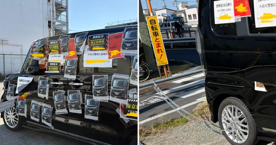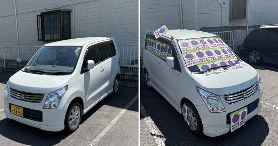 血の跡がついたヴェルファイアが、駐車場に捨てられていた。
