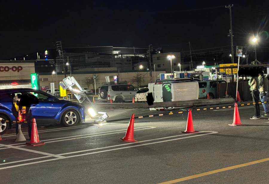 だが、フロントバンパーは割れ、左側に赤黒い擦過痕。