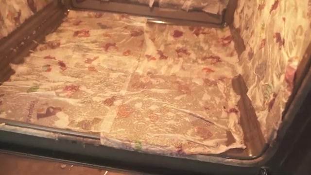 重曹と水を混ぜてペーストを作る重曹はアルカリ性なので、酸化した油汚れを分解する力がある。オーブンの焦げ付き部分に塗るたっぷり塗るとより効果的。30分〜1時間放置汚れが分解されて、浮き上がる。スポンジで軽くこする