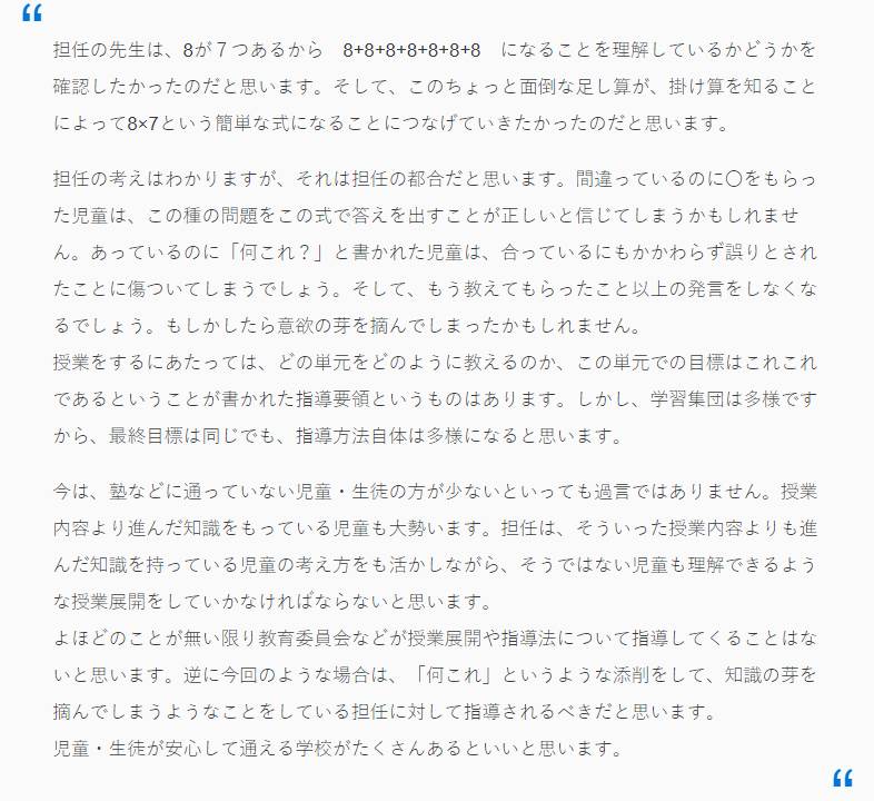 これが教育方針であると言われればそうなのかもしれませんが、答えとしては正解なはずです。案の定ネットでも「理解できない」という答えが多かったようですが、これが現代の教育なのでしょうか?
