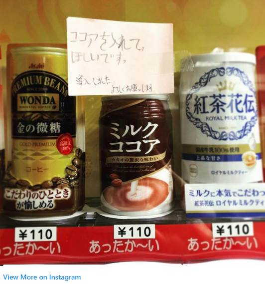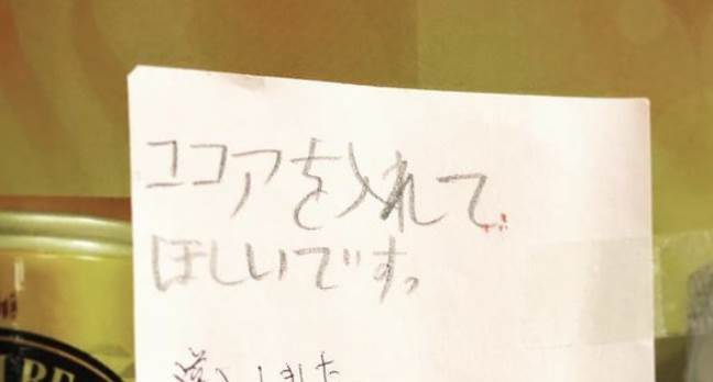 メモにはそんな言葉が書き足され、自動販売機にはホットココアが追加されているではないですか!