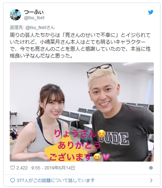 それから10年後、ロンハーの企画で再び田村亮さんと再会することになった小嶋菜月さん。番組内では、芸人たちから「亮さんのせいで不幸になった」とイジられましたが、彼女自身はとても明るく、亮さんに対して恩人として感謝の気持ちを持ち続けていました。